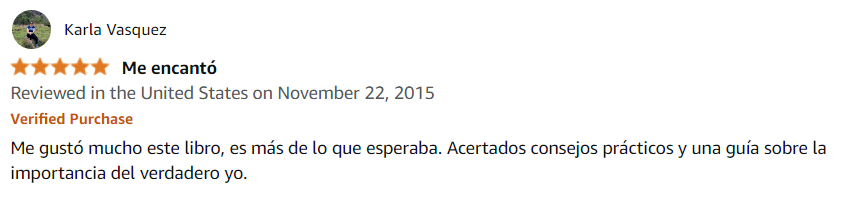 "Me gustó mucho este libro, es más de lo que esperaba. Acertados consejos prácticos y una guía sobre la importancia del verdadero yo."